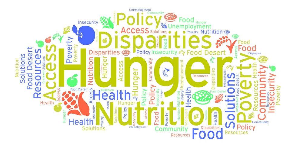Food insecurity is influenced by a range of factors beyond just income. Terms such as “poverty,” “access,” “nutrition” and “health” highlight how the issue is connected to broader social and economic conditions, including employment, community resources and food availability.